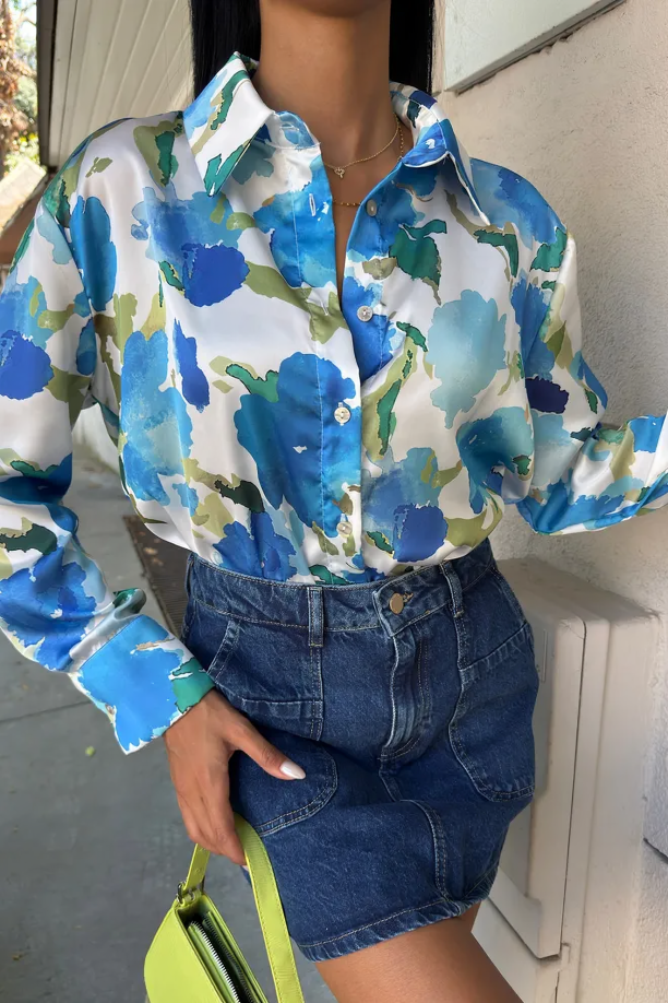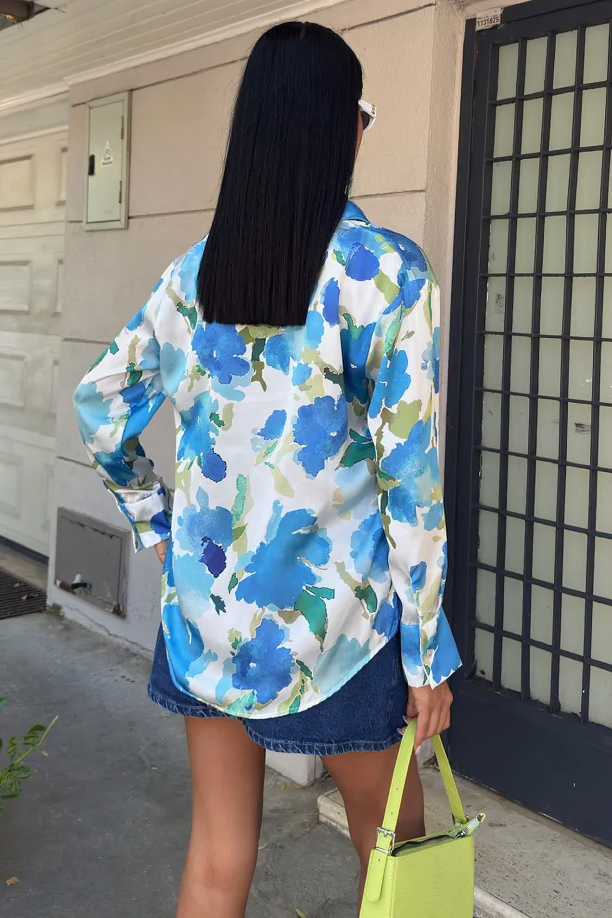 - Color & Pattern: Main color is white with a watercolor floral pattern in blue and green accents.